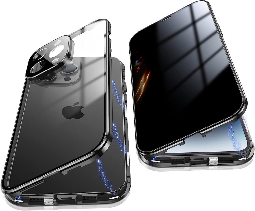 FULL PROTECTION: iPhone 13/14/15 Pro Max Series screen protector magnetic case full body metal frame protection & shock-absorbing design. Explosion-proof magnetic tempered double sided phone case protect against scratches.