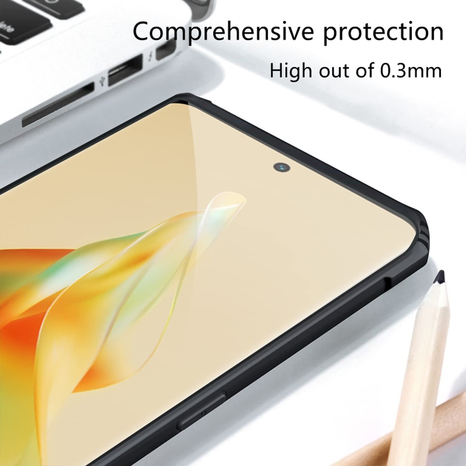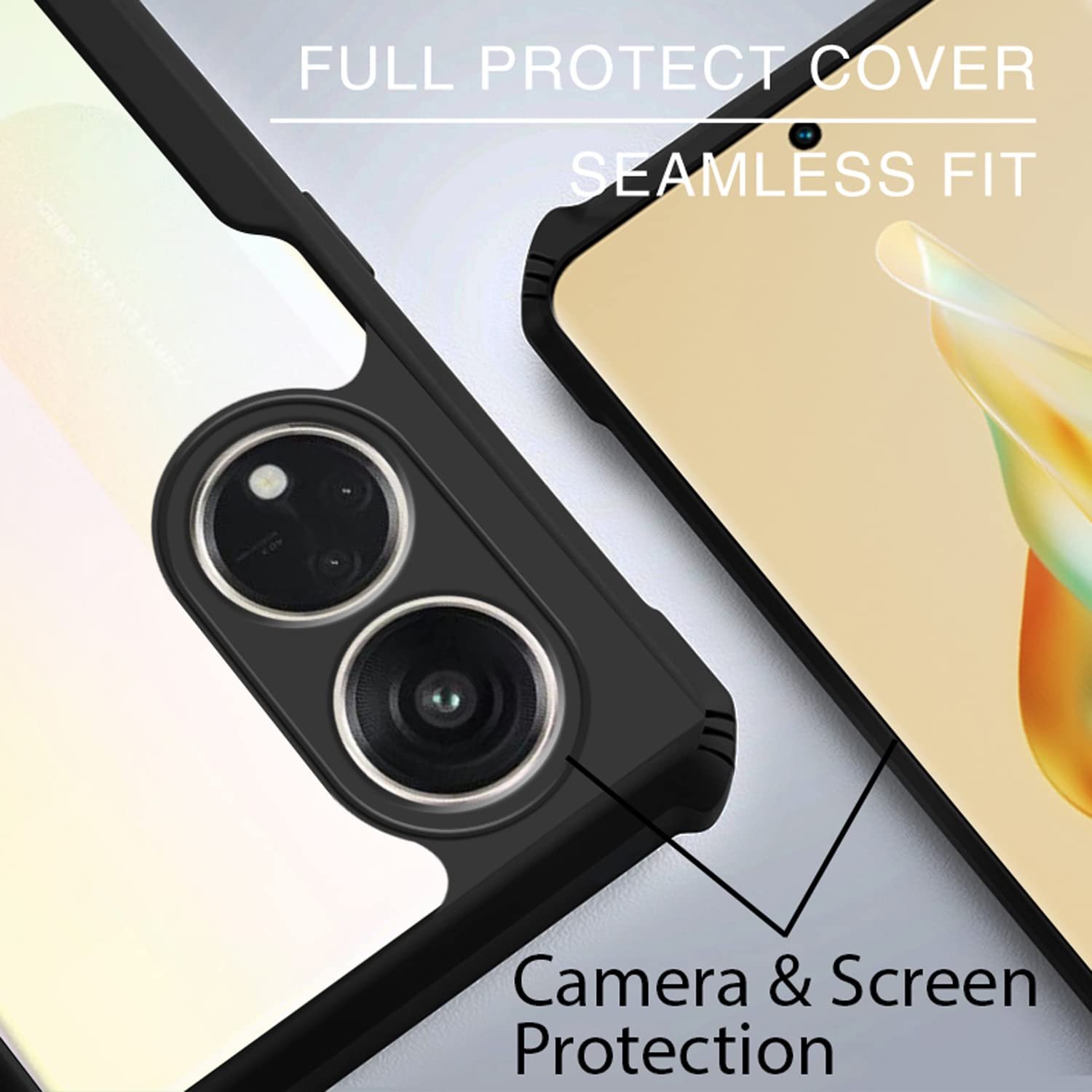 Hybrid Protection: Combining a hard Transparent PC back, a Soft TPU frame and shock-absorbent corners, this hybrid case provides comprehensive protection without sacrificing clarity.