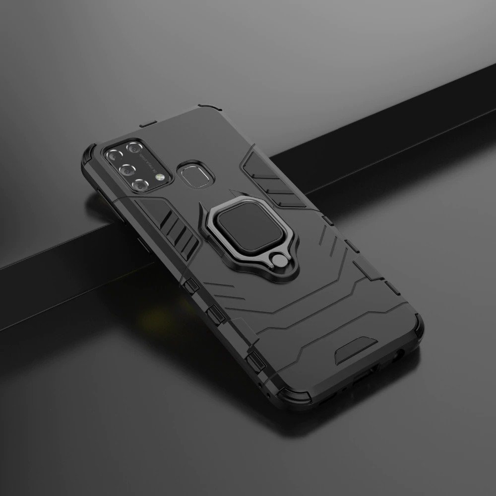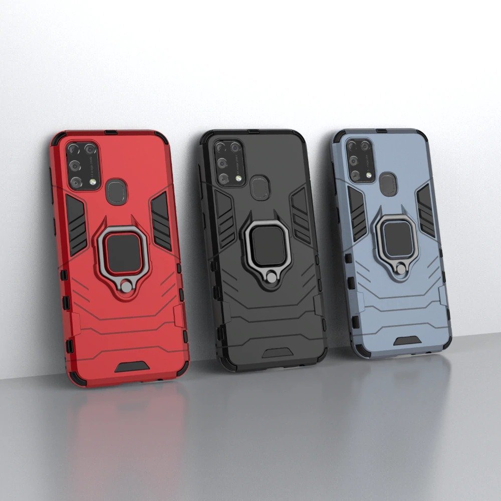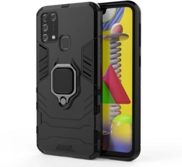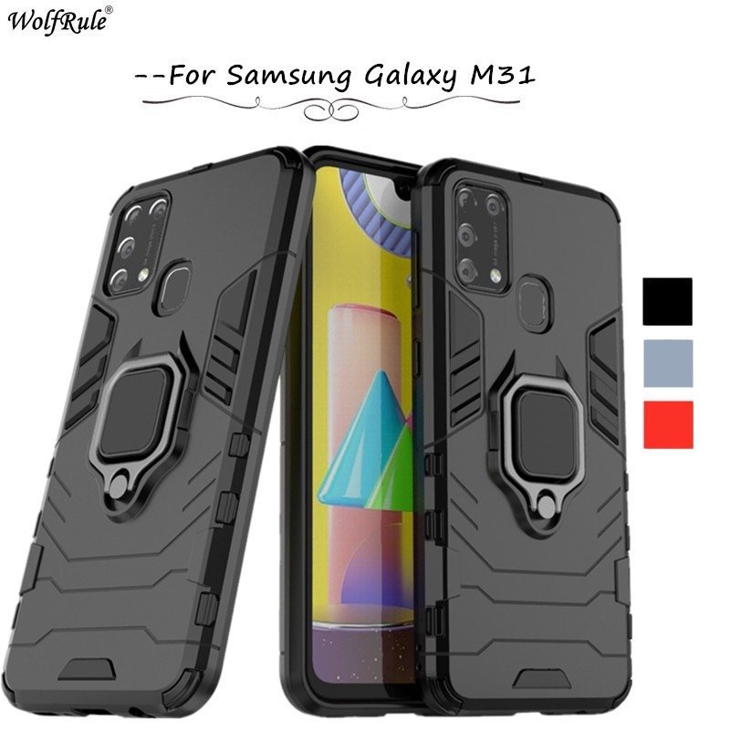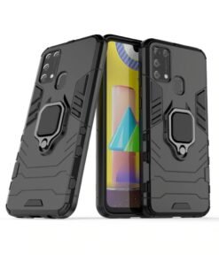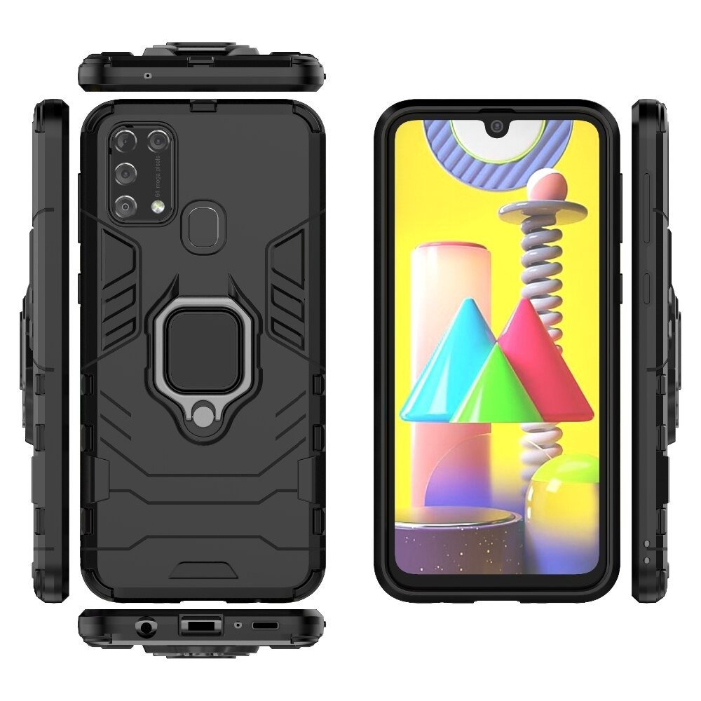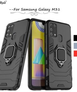 Samsung Galaxy M31 Case Luxury Ring Back Cover Case +3D Tempered Glass Protector